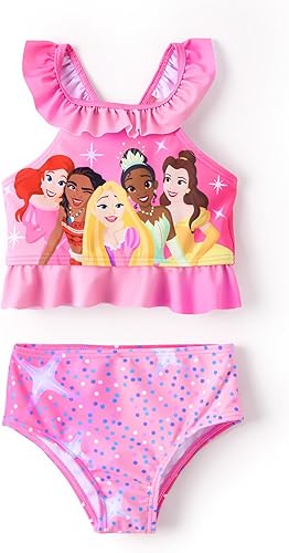 Disney Princess Toddler Girls Two Piece Tankini Top and Bow Tie Bikini Bottom Beach Swimwear Set