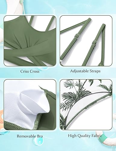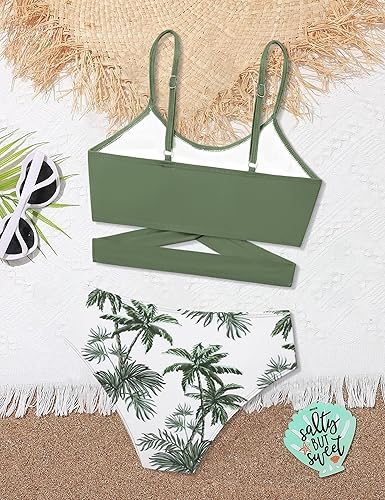 Girls Swimsuits Bikini Set Two Piece Bathing Suit Criss Cross Girls Swimwear with Chest Pad