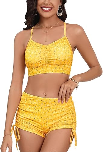 SOLY HUX Bikini Sets for Women Floral Print Top and Drawstring Side Shorts Bikini Bathing Suits 2 Piece Swimsuit